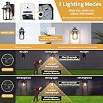 3 Lighting Modes:The poch lights offer you three different modes(High/Low/Manual). ① High Mode: Stays all night 30% brightness and turn 100% brightness when motion is detected. ②Low Mode: 0% brightness without movement at night, 100% brightness with movement detected,auto-off after 60 seconds without movement.③ Manual Mode: In Auto mode, switch the power button to enter Manual mode, the light will tum on and stay on for 8H, or until the dusk to dawn sensor detects light in the morning