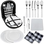 Picnic package includes: 2 forks, 2 spoons, 2 knives, 2 dinner plates, 1 cutting board, 1 bottle opener, 1 butter cheese knife, 2 napkins, perfect for camping or picnicking in any weather. Invest in a durable, reusable tableware set to enhance your dining experience no matter where you go.