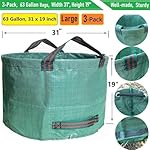 >> 3-Pack, 63 Gallon Lawn Garden Leaf Bags; Large Size, Diameter 31″, Height 19″, Yard Waste Bags with Waterproof Gardening Gloves: Yard garden bag is made from rugged rip-resistant polypropylene fabric. Bigger Better than other lawn garden bags; With waterproof garden gloves, Fit for Leaf bag,Yard waste bag,debris bag,Weeds bag,Plants clippings bags; Garden bag has capacity of 63 gallon, You can fill it with more stuff; Fit for Camping waste bag,Car trunk,Laundry storage bag,Moving house bags