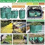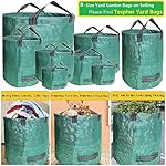 >> Well-made, Reusable Yard Waste Bags; Versatile, Heavy Duty Lawn Garden Bags, Especially Durable and Sturdy Yard Leaf bags: With its roomy, decent design, these garden tarp bags are ideal for Lawn debris bag,Yard waste bag,Landscape pruning bag,Garden waste bags; Car trunk,Beach towels bags,Camping waste bag,Laundry bags; Garden leaf bag with 4 handles which were stitched 10-times; Very durable & sturdy; Garden leaf bag with plastic loop which holds open the upper a part of the leaf bag