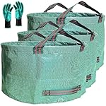 >> 3-Pack, 63 Gallon Lawn Garden Leaf Bags; Large Size, Diameter 31″, Height 19″, Yard Waste Bags with Waterproof Gardening Gloves: Yard garden bag is made from rugged rip-resistant polypropylene fabric. Bigger Better than other lawn garden bags; With waterproof garden gloves, Fit for Leaf bag,Yard waste bag,debris bag,Weeds bag,Plants clippings bags; Garden bag has capacity of 63 gallon, You’ll be able to fill it with more stuff; Fit for Camping waste bag,Car trunk,Laundry storage bag,Moving house bags