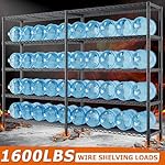 【1600 LBS Capacity Super Sturdy Storage Shelving Storage Rack】This Metal shelves for storage made of heavy duty steel wire,and has undergone special coating remedy. Each and every solid thickened shelving with extra stiffener, can easily bear 320LBS a total of 1600 lbs bearing capacity. this means that this metal shelving unit will at all times be your reliable partner.