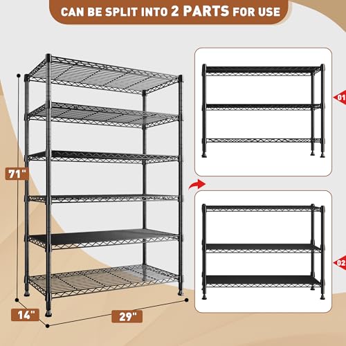 REIBII 71″ H Metal Shelves 6 Tier Wire Shelving Unit 1200LBS Adjustable Shelving Units and Wire Shelf Storage Rack Shelf Metal Shelving, Dorm Storage Shelves, 71″ H x 29″ W x 14″ D