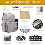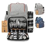 Rnoony Picnic Backpack for Camping, Picnic Basket for with Insulated Cooler Bag and Bottle Pouch,Camping Gifts for Couples with Lightweight Blanket and Cutlery Set for Family, Couple and Hiking