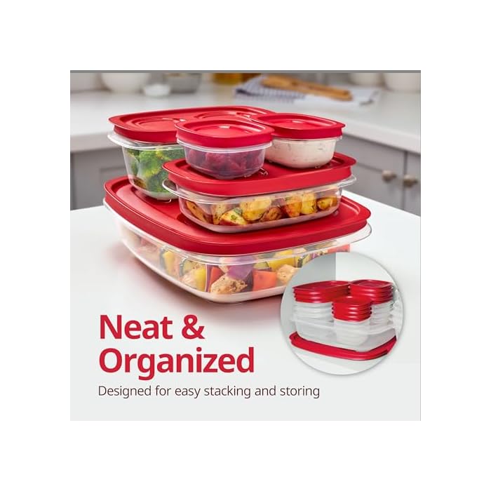 Give the kitchen an organizational upgrade with the Rubbermaid EasyStore Containers. Nest one inside the other, stack them up, or separate the pieces: Each container and lid is designed to keep you organized and maximize space in the pantry or fridge. The ridged lids lead them to ideal for stacking, so when it’s time to stash leftovers in the fridge, there’s a number of room. Packing up food for a picnic or taking A couple of containers to the office for lunch is easy with the extended lip offering extra make stronger for carrying and the SecureGrip lid ensuring a tight seal. Whether the food storage containers are used to portion off meals or snacks, then taken outdoor of the home, they’re built to last, as they’re designed with durability in mind. With Rubbermaid EasyStore Containers enjoy neat and organized food storage, any way you stack it.