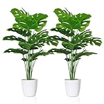 Packaging and Size: The package comes in 2 set of artificial monstera plants, including 2 white plastic pots with small stones, 2 stems of plants and 2 set of greenery leaves. Each and every of artificial monstera plants measures 28 inch long, 7.8 inch wide.