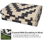 EASY CLEANING & PORTABLE: For a quick clean simply sweep away dirt with water and airing it dry. Reversible outdoor rugs can be folded into compact size for easy storage, it comes with a carrying bag for added convenience. Suitable for an afternoon outing or an RV road trip.