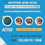Natural Live Bacteria: Each Pak Contains a Bio Starter Blend of Billions of CFU Which Produce Helper Enzymes for your Sewer Tank. Compare to Yeast, Chemicals, Cleaner, or Odor Neutralizer that Cover up Long Term Issues in Your Ceptic Tank, Drain Field and Cesspool. ACTIVE is Professionally Formulated & Made in USA.