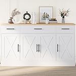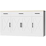 Modern Farmhouse Design Cabinet: Marring an impressive wood grain surface with white finish, the sideboard buffet with storage perfectly fuses farmhouse flair and classic modern style, which makes it easy to blend with any cottage, contemporary, modern farmhouse and more traditional interiors.