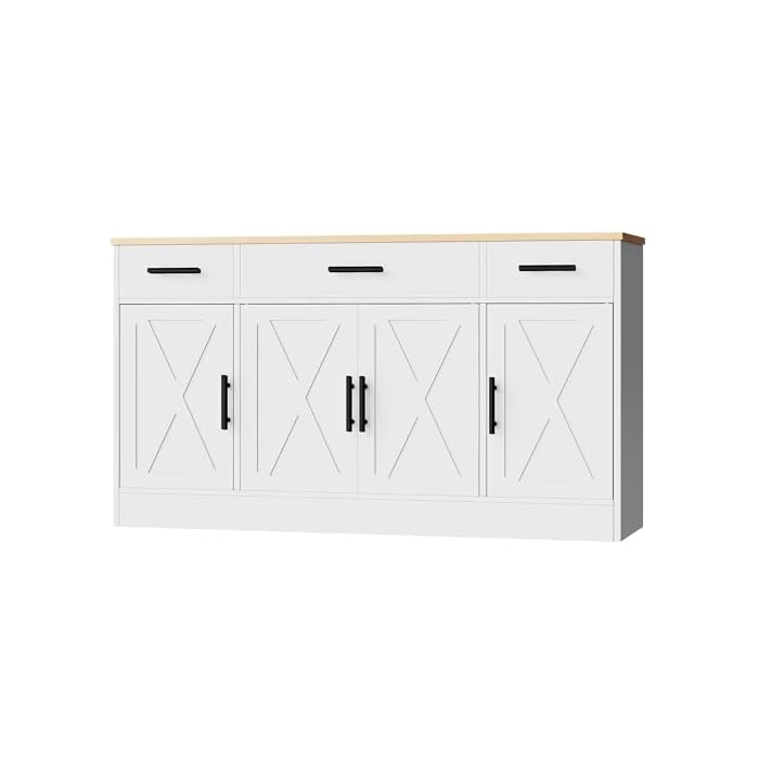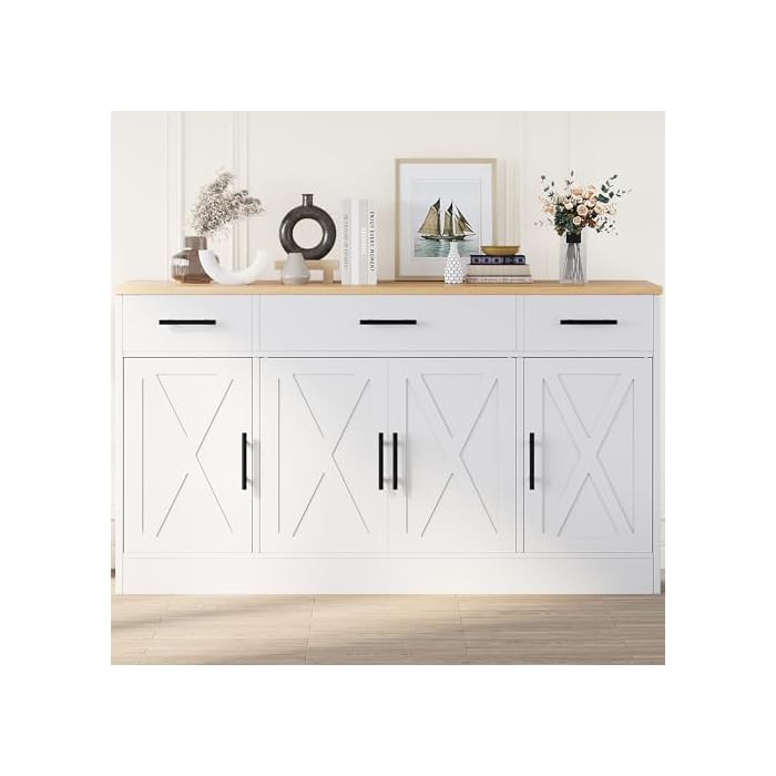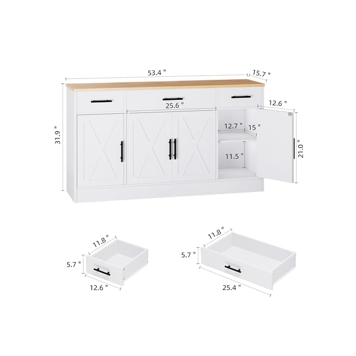 Shintenchi Buffet Cabinet with Storage,53.4″ Large Kitchen Storage Cabinet with 3 Drawers and 4 Doors,Wood Farmhouse Buffet Sideboard with Adjustable Shelf for Kitchen Living Room