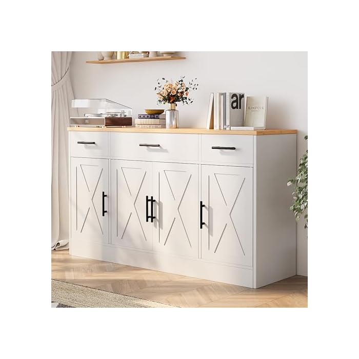 Modern Farmhouse Design Cabinet: Marring an impressive wood grain surface with white finish, the sideboard buffet with storage perfectly fuses farmhouse flair and classic modern style, which makes it easy to blend with any cottage, latest, modern farmhouse and more traditional interiors.