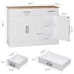 Shintenchi Modern Farmhouse Sideboard Buffet Cabinet with Storage with 3 Doors,42″ Barn Doors Buffet Cabinet with Storage, Wood Coffee Bar Cabinet with Adjustable Shelf for Kitchen Living Room,White