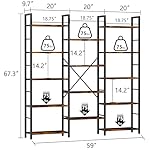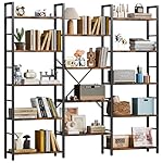 Shintenchi Triple 5 Tier Bookshelf, Industrial Large Bookcase with 14 Open Display Shelves, Large Etagere Bookshelf,Wide Book Shelf Book Case for Home & Office, Rustic Brown