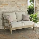 Signature Design by Ashley Clare View Coastal Outdoor Patio Eucalyptus Loveseat with Cushions, Beige