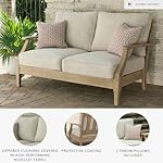 CUSHIONED LOVESEAT: Looking for something more refined in your outdoor space? This loveseat fulfills with comfy cushions and eucalyptus wood that’s protected to weather the elements with ease