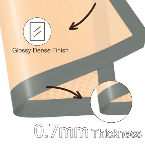[ NONSTICK SURFACE ] There is not any want to grease the silicone baking sheet when the use of it, and even the dough is less likely to stick to the silicone baking sheets for oven. Every baking mat is 0.03 inches thick, double thickness for durability.
