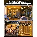 【IP65 Waterproof & Easy Installation】The outdoor string lights are weather-resistant and easy to install with no wiring or electricity costs. Easy to operate with On/Off button and Mode button, diverse lighting options are available and can be placed on various surfaces for home and garden ambiance;