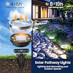 【Auto Turning ON/OFF】These solar ground lights (H 3.9″x D 3.3″) feature an intelligent light sensor for automatic dusk-to-dawn operation. Powered by sunlight, these garden lights charge in 4-6 hours and illuminate for 8-10 hours, offering a sustainable, hassle-free outdoor lighting solution for eco-conscious buyers