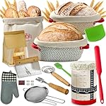 Sourdough Starter Kit, 33 Pcs Sourdough Bread Baking Supplies, 9 10 Inches Round&Oval Cotton Rope Banneton Bread Proofing Basket Set of 2, Beginner Friendly Bread Making Tools with Starter Jar