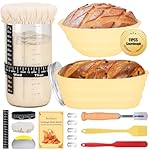 Sourdough Starter Kit, 34oz Sourdough Starter Jar, 2 Bread Proofing Baskets, Thermometer, Feeding Time Tracker, Metal Scraper, Easy to Clean, Complete Sourdough Bread Baking Supplies for Beginners