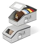 Stackable Hat Storage for Baseball Caps, Hat Organizer for Closet Hold Up to 30 Caps with Clear Window & Cardboard, Hat Boxes for Women & Men | 2Pcs Grey