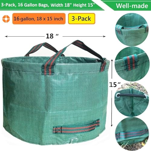 >>> Package Included 3 Pack 16 Gallons (D18, H15 inches) Household Yard Debris Bags Lawn Gardening Waste Bags Reusable Yard Waste Bags Household Storage Bags with One Pair Gardening Gloves: These yard garden tarp bag is great for mowing lawns, plants pruning, backyard waste cleaning and hauling, landscaping debris,old sod & dirt removal, yard waste disposal and debris removal; Just send us email if any concerns, We can response within 48 Hours