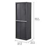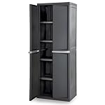 Keep your items organized and tucked away safely with the Sterilite 4-Shelf Cabinet. These freestanding cabinets offer generous 4 adjustable tiers, providing ample room to house all kinds of items. Whether it’s tools, household supplies, or seasonal gear, these cabinets can take care of it all. Say goodbye to the endless search for misplaced items; everything you wish to have is within arm’s reach. The doors of these cabinets swing open and closed with ease, granting you instant access to your stored belongings. No more struggling with cumbersome cabinet doors. What’s more, these doors close securely, preventing any unwanted spills or accidents. Your items will stay right where you put them. Crafted from heavy-duty materials, these office supply cabinets are designed to resist the toughest of challenges. They may be able to endure the wear and tear of daily life, ensuring they remain a reliable storage solution for years yet to come. Add some stackable containers inside for seasonal storage, small drawer organizers for office supplies, or bins for clothing storage. Use them for kitchen pantry foods, patio tool storage, outdoor gardening essentials, or a closet in your dorm. The cabinets are even versatile enough to use as lockers. The versatility is endless! Compatible with standard-sized padlocks, this free standing cabinet provides you with the peace of mind that your important items are safe. If you wish to have more storage space in your garage, mud room, utility room, or basement, the Sterilite 4-Shelf Storage Cabinet are the solution for you.