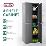 Sterilite 4 Shelf Cabinet, Lockable Utility Storage w/ Adjustable Shelves, Gray – Plastic Shelving Unit for Organizing Garage, Pantry, Basement, Laundry Room or Mudroom