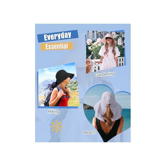 Sun Hats for Women UPF 50+ Uv Protection with Ponytail Hole,Beach Wide Brim Hats Fishing Hats,Gardening Hat for Neck Flap