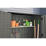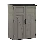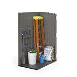 The Suncast 54 cu. ft. Resin Vertical Lockable Storage Shed offers an elegant and durable outside storage solution for organizing tools, garden supplies, and more. Built from multi-wall resin panels, this shed is engineered for long-lasting strength, stability, and resistance to harsh weather conditions, ensuring your items remain protected and safe year-round. Its vertical design efficiently maximizes storage space without taking up too much ground area, whilst the built-in supports accommodate up to three shelves (sold one after the other), allowing you to customize the interior layout to fit your needs. The double-door design provides easy access to stored items and features pad-lockable handles, offering enhanced security to keep your belongings protected. The shed’s neutral Stoney color and sleek design complement any outside setting, adding both function and style to your backyard or patio. Measuring 4 ft. 5 in. W x 2 ft. 8.5 in. D x 5 ft. 11.5 in. H, this versatile plastic storage shed provides 54 cubic feet of storage capacity, making it an excellent choice for smaller spaces or tight areas that require reliable and safe organization.