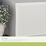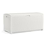 Suncast 99 Gallon Wicker Horizontal Outdoor Deck Box with Hinged Lid, Water-Resistant Storage Solution for Patio, Deck, Yard, and Garage, White, Made in the USA