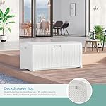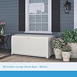 DECK STORAGE BOX: This elegant 99-gallon white resin deck box provides ample space for organizing Out of doors items like patio cushions, tools, sports equipment, and gardening supplies