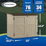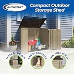 Suncast Outside Storage Design: Storage shed is designed for all-weather use and provides reliable water resistance and sun rays protection that ensures your tools and accessories remain secure