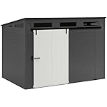 Suncast Modernist 10 Foot by 7 Foot Outdoor Plastic Storage Shed with Pad Lockable Sliding Barn Door for Outdoor Storage Items, Gray and Black
