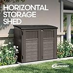 Storage space can be a problem, let the Suncast Glidetop Horizontal Shed be your solution. This medium sized 4 ft. x 2 ft. shed offers a spacious capacity of 35 cu. ft. and features wide double doors with a hinged lid, allowing you to move and store oversized items with ease. With a sleek, low-profile design, it is the ideal compact storage space for trash cans, bikes, mowers and patio furniture. The outdoor storage shed is constructed of blow molded resin that is both durable and strong. Resin is easy to clean and will not rust or rot, for an attractive and professional-looking space that allows you to last a lifetime.