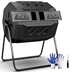 SUPER DEAL Outdoor Compost Tumbler, 43 Gallon Dual Chamber BPA Free Large Compost Bin 360° Rotating Tumbling Composter for Garden Yard, Black