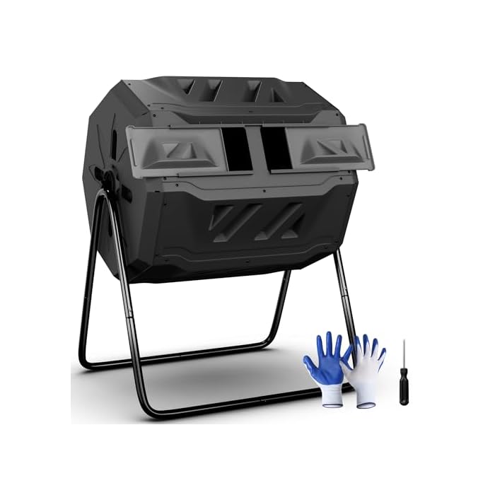 SUPER DEAL Outdoor Compost Tumbler, 43 Gallon Dual Chamber BPA Free Large Compost Bin 360° Rotating Tumbling Composter for Garden Yard, Black