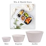 EASY TO USE Each and every baking cup is microwave, dishwasher, freezer and oven secure, can be utilized in a muffin tin or free standing, little need for grease or non-stick spray