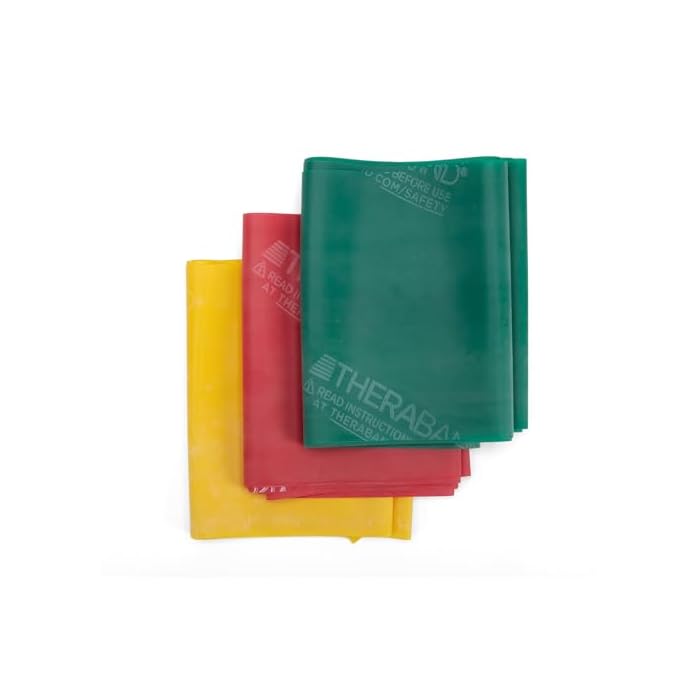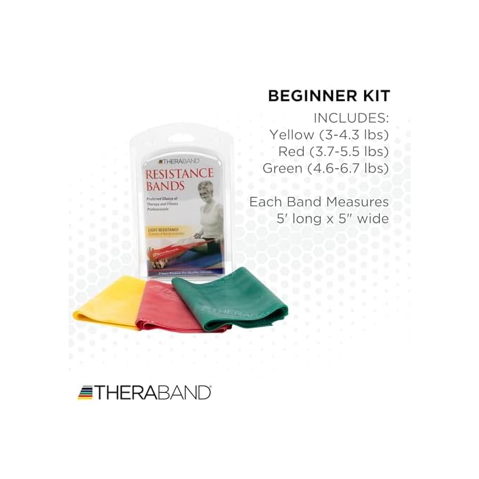 THERABAND Resistance Bands Set, Beginner Kit, Yellow, Red, Green, Latex Elastic Bands for Exercise & Physical Therapy, Strength Training Bands for Upper & Lower Body Fitness