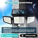【Long Working Time】:This solar powered flood light has a built-in 2000mAh rechargeable battery with the high-efficiency solar panel to make certain that it may be charged at less light day. Please set the solar light button on OFF state on cloudy and rainy days ensure the solarpanel is charged facing the sun for 2-3 days and turn on the light again.