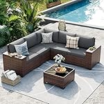 UDPATIO Patio Furniture Set, 8 Inch Armrest Outdoor Sectional Sofa, 6 Piece Wicker Outdoor Furniture Conversation Sets with Waterproof Cover and Coffee Table for Backyard Deck(Brown/Dark Grey)