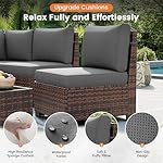Extra-Wide Armrests: Outside sectional patio set features 8-inch wide armrests that may double as convenient side tables for added functionality. Regardless of the wide armrests, the spacious 646 sq. ft. seating area remains unaffected. Each and every modular sofa includes a 105° reclining backrest, offering ultimate comfort for your relaxation.