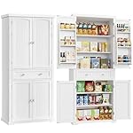 [Huge Storage Capacity] Boasting 2 large cabinets, a big slide-out drawer, and 6 door shelves, this spacious pantry fits everything from your food and dinnerware to kitchen appliances, tidying up wherever you set it
