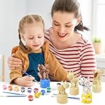 Vileafy Crafts for Kids, Painting Kits for Kids Ages 4-8 with Paints & 8 Brushes, DIY Arts and Crafts for Boys and Girls, Unfinished Wood Figures for Painting Party Favors