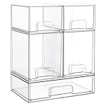 Vtopmart Stackable Storage Drawers Set of 5, Clear Plastic Organizer Bins for Beauty Supplies,Ideal for Vanity, Bathroom,Cabinet,Pantry Organization