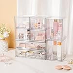 [Stackable Design] Come with 5 storage drawers, included 12.1″ W and 4.4”H&7.6‘’H storage containers. The storage containers are stackable, vertical storage will save a lot of space. Put your small objects in acrylic drawers to make your countertop space more tidy.