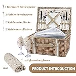 Willow Picnic Basket Set for 2 Persons with Large Insulated Cooler Bag and Waterproof Picnic Blanket, Wicker Picnic Hamper for Camping,Outdoor,Birthday