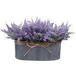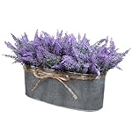 Color: Faux lavender plants feature purple lavender buds with matching green small-leaf foliage mixed in that are full and lush. The oval galvanized metal planter box features ribbed detailing in a distressed vintage look and is tied with a jute twine for a beautiful French accent. This rustic and elegant artificial lavender arrangement is a wonderful addition to farmhouse and country decorations. Realistic lavender flowers will bring a touch of Provence to your decor.