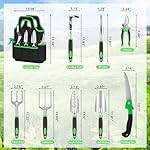 Complete Gardening Tool Set: This landscaping tools set contains everything you need for daily garden maintenance. Includes hand trowel, transplanting trowel, garden rake, garden fork, saw, weed eater, weeding knife, and pruners, plus 10 tags, zip ties, seeder, watering can, gardening gloves, and stylish and durable gardening tote, This is a complete green team.