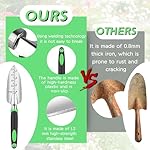 Better Quality Material: This yard tool is constructed from high-strength aluminum alloy for an ideal balance of durability and lightweight design. The material’s exceptional hardness and rust-resistant properties make our tools durable and reliable, so users don’t have to worry about tools rusting or breaking when pruning, digging, weeding, and more. after careful polishing, the surface of the tool has minimal adhesion, making it difficult for dirt to adhere and making it easier to clean.